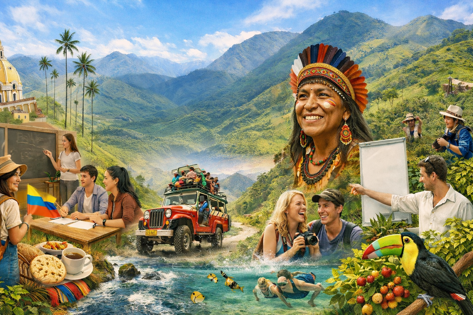 En Idiomas Turismo y Cultura diseñamos experiencias de intercambio cultural y vacacional, conectando viajeros con territorios auténticos y comunidades vivas, a través de programas formativos, inmersivos y turísticos únicos en Colombia y el mundo.